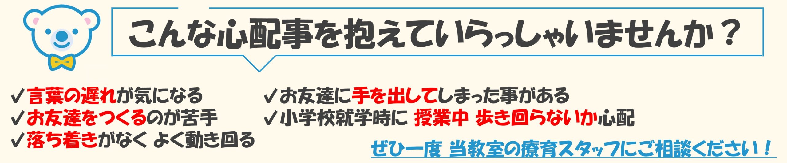 そんな時は 専門家(当教室の療育スタッフ)に
